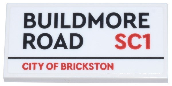 Tile 2 x 4 with Black 'BUILDMORE ROAD' and Red 'SC1' and 'CITY OF BRICKSTON' Pattern (Sticker) - Set 21347