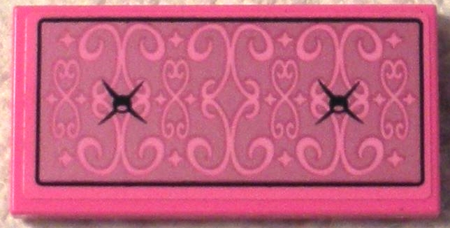 Tile 2 x 4 with Cushion with Filigree, Sparkles, Black Outline and Buttons Pattern (Sticker) - Set 43192