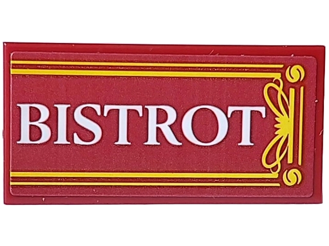 Tile 2 x 4 with Yellow Frame and White 'BISTROT' Pattern (Sticker) - Set 910032