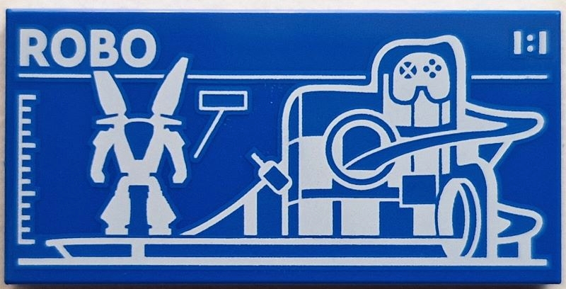 Tile 2 x 4 with Robot World (Set 60421) Blueprint with White 'ROBO' and '1:1' Pattern