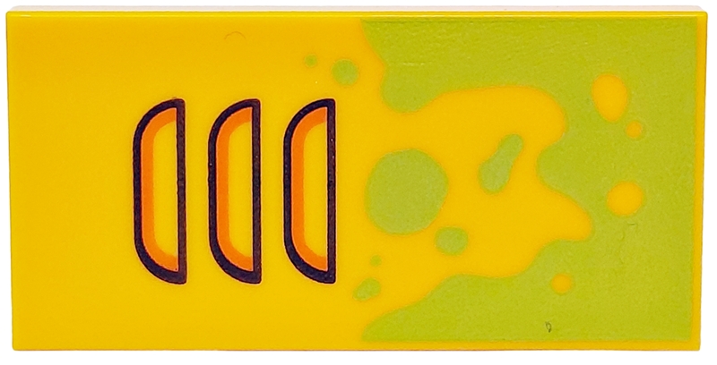 Tile 2 x 4 with Lime Paint Splotches and Air Vent with Orange Highlights and Black Outlines Pattern