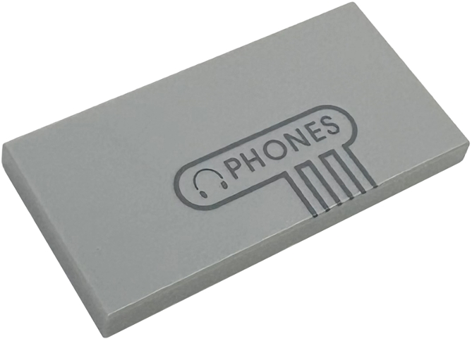 Tile 2 x 4 with Dark Bluish Gray Headphones Icon, 'PHONES' and Outline Pattern