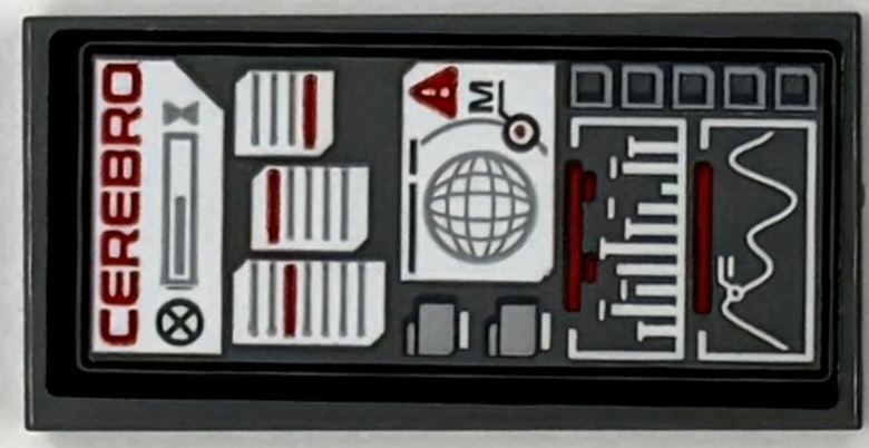 Tile 2 x 4 with Computer Screen with Red 'CEREBRO', White Windows and Graphs Pattern (Sticker) - Set 76294