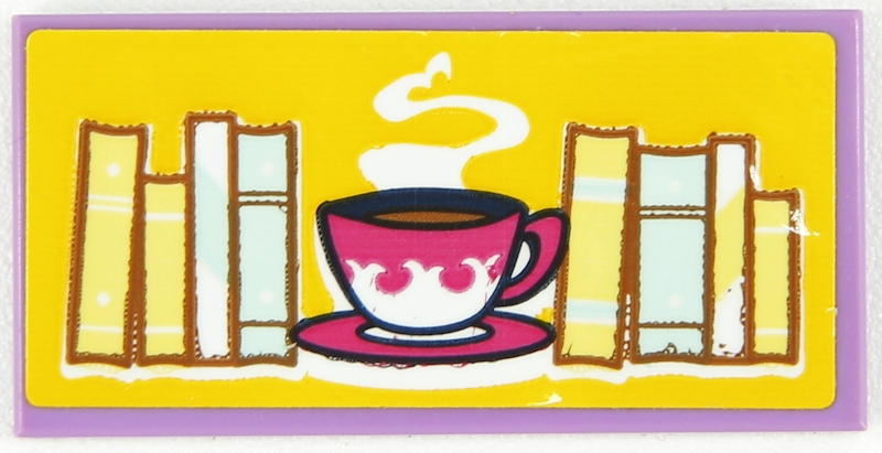 Tile 2 x 4 with Books, Steaming Cup and Saucer on Yellow Background Pattern (Sticker) - Set 41704