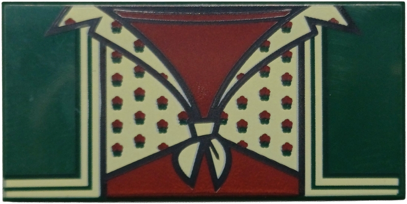 Tile 2 x 4 with Open Vest, Tan Trim and Shirt with Knot and Flowers over Dark Red Undershirt Pattern (BrickHeadz Max Mayfield Torso)