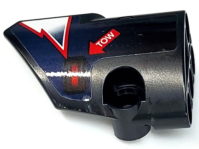 Technic, Panel Fairing # 1 Small Smooth Short, Side A with White 'TOW' on Red Arrow, Red and White Lightning Stripes Pattern (Sticker) - Set 42109