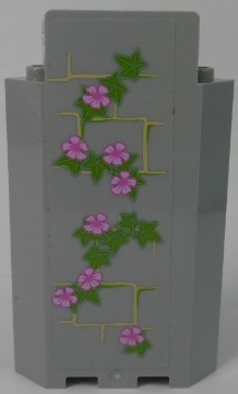Panel 3 x 3 x 6 Corner Wall without Bottom Indentations with Bricks and Ivy Trunks with 8 Magenta Flowers Pattern 2 (Sticker) - Set 41055