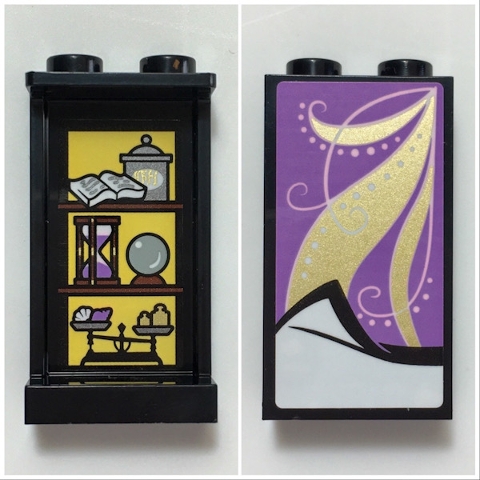 Panel 1 x 2 x 3 with Side Supports - Hollow Studs with Medium Lavender Blanket with Gold Highlights on Outside and Shelves with Book, Jar, Hourglass, Crystal Ball, and Scales on Inside Pattern (Stickers) - Set 41196