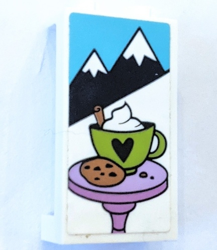 Panel 1 x 2 x 3 with Side Supports - Hollow Studs with Mountains, Cookie and Hot Chocolate Cup with Heart Pattern (Sticker) - Set 41319
