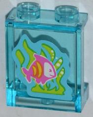 Panel 1 x 2 x 2 with Side Supports - Hollow Studs with Dark Pink Fish with Yellow Stripes, Lime Seaweed Pattern (Sticker) - Set 3188