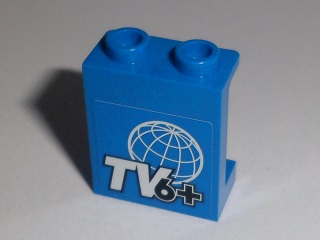Panel 1 x 2 x 2 with Side Supports - Hollow Studs with 'TV6+' and White Wire Frame Globe Pattern (Sticker) - Set 60097
