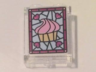 Panel 1 x 2 x 2 with Side Supports - Hollow Studs with Cupcake and Magenta Hearts Stained Glass Pattern (Sticker) - Set 41119