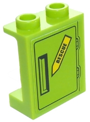 Panel 1 x 2 x 2 with Side Supports - Hollow Studs with Black 'RESCUE' on Yellow Arrow and Black Door Hatch Pattern (Sticker) - Set 60123
