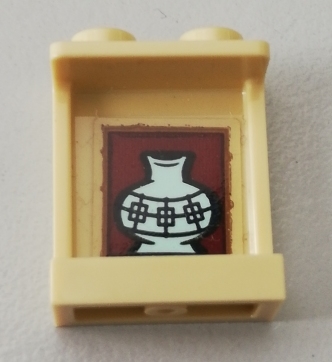 Panel 1 x 2 x 2 with Side Supports - Hollow Studs with White Vase on Reddish Brown Background Pattern (Sticker) - Set 75551