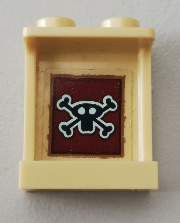 Panel 1 x 2 x 2 with Side Supports - Hollow Studs with Black Skull and Crossbones on Reddish Brown Background Pattern (Sticker) - Set 75551