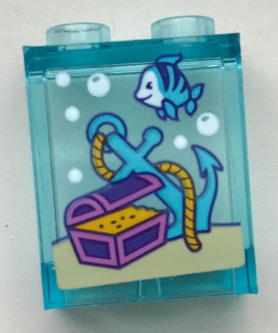 Panel 1 x 2 x 2 with Side Supports - Hollow Studs with Bubbles, Fish, Anchor and Treasure Chest Pattern (Sticker) - Set 41345