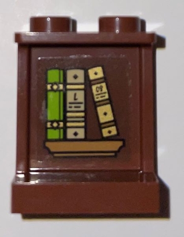 Panel 1 x 2 x 2 with Side Supports - Hollow Studs with Lime, Dark Tan, and Gold Books, Medium Nougat Shelf Pattern (Sticker) - Set 75969
