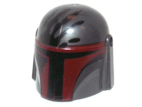 Minifigure, Headgear Helmet with Holes, SW Mandalorian with Dark Red Visor and Black Handprint Pattern