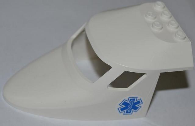 Aircraft Fuselage Forward Top Curved 6 x 10 x 4 with 3 Window Panes with EMT Star of Life Pattern on Both Sides (Stickers) - Set 4429