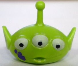 Minifigure, Head, Modified Alien with Antenna with Three White Eyes and Dark Purple Splotches Pattern