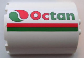 Cylinder Half 3 x 6 x 6 with 1 x 2 Cutout with Red and Green Stripes and Octan Logo Pattern Model Left Side (Sticker) - Set 7939
