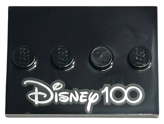 Tile, Modified 3 x 4 with 4 Studs in Center with Silver 'Disney 100' Pattern