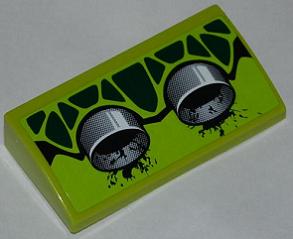 Slope, Curved 2 x 4 x 2/3 with Bottom Tubes with Green Scales and 2 Exhaust Pipes Pattern Model Left Side (Sticker) - Set 9457