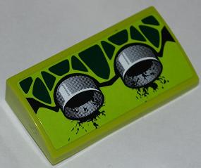 Slope, Curved 2 x 4 x 2/3 with Bottom Tubes with Green Scales and 2 Exhaust Pipes Pattern Model Right Side (Sticker) - Set 9457