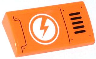 Slope, Curved 2 x 4 x 2/3 with Bottom Tubes with Lightning Bolt in Circle and Horizontal Grille Pattern Model Right (Sticker) - Set 70705