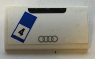 Slope, Curved 2 x 4 x 2/3 with Bottom Tubes with Silver Audi Logo and Black '4' in Blue and White Rectangle Pattern (Sticker) - Set 75873