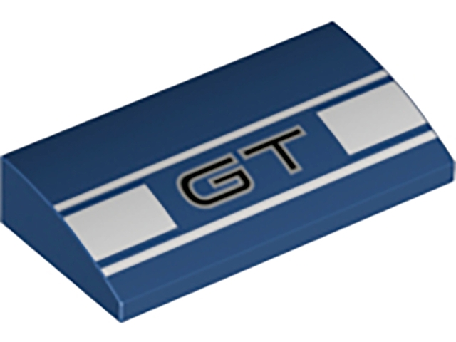 Slope, Curved 2 x 4 x 2/3 with Bottom Tubes with 'GT' and White Stripes Pattern