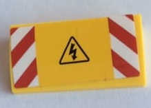 Slope, Curved 2 x 4 x 2/3 with Bottom Tubes with Red and White Danger Stripes and Electricity Danger Triangle Pattern (Sticker) - Set 60132