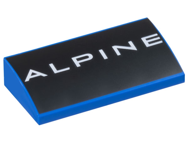 Slope, Curved 2 x 4 x 2/3 with Bottom Tubes with White 'ALPINE' on Black Background Pattern
