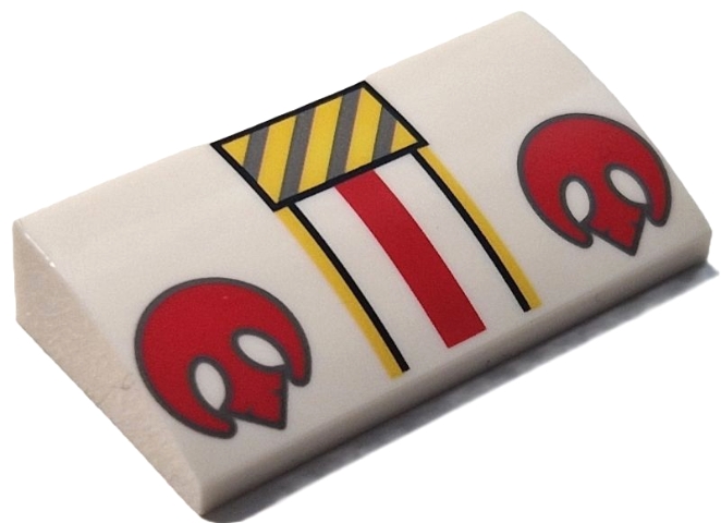 Slope, Curved 2 x 4 x 2/3 with Bottom Tubes with Yellow and Dark Bluish Gray Danger Stripes, 2 Red SW Rebel Alliance Symbols Pattern (BrickHeadz Luke Skywalker (Rebel Pilot) Helmet)