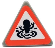 Road Sign 2 x 2 Triangle with Clip with Coral Border and Black Silhouette of Mini Doll Splashing in Water / Swimming Danger Pattern (Sticker) - Set 41421