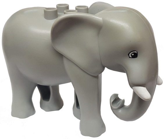 Duplo Elephant Adult, Walking with White Tusks, Black Eyes Squared Pattern