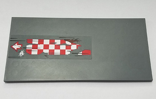 Tile 8 x 16 with Bottom Tubes, Textured Surface with Red and White Tattered Checkered Flag, Arrow and Dirt Pattern (Sticker) - Set 70605