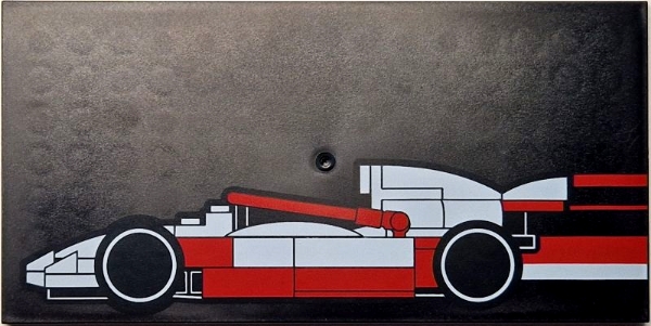 Tile 8 x 16 with Bottom Tubes, Textured Surface with Red and White LEGO Formula 1 Race Car Profile Pattern Model Left Side