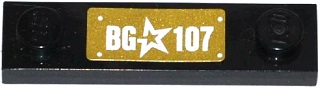 Plate, Modified 1 x 4 with 2 Studs without Groove with White Star and 'BG 107' Pattern (Sticker) - Set 41107