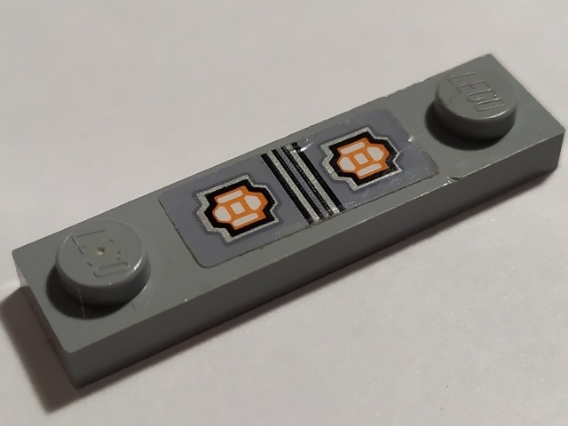Plate, Modified 1 x 4 with 2 Studs without Groove with Silver Lines and Bright Light Orange Pattern (Sticker) - Set 70322