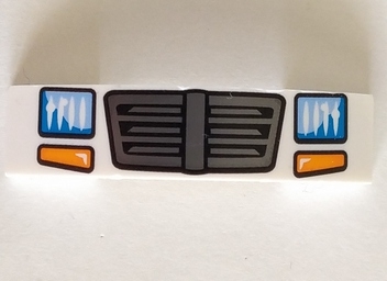 Slope, Curved 4 x 1 x 2/3 Double with Metallic Silver Grille, Blue Headlights, and Orange Turn Lights Pattern
