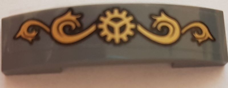 Slope, Curved 4 x 1 x 2/3 Double with Gold Gear and Ornament Pattern (Sticker) - Set 70810