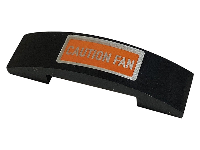 Slope, Curved 4 x 1 x 2/3 Double with Silver 'CAUTION FAN' with Border on Orange Background Pattern (Sticker) - Set 10265