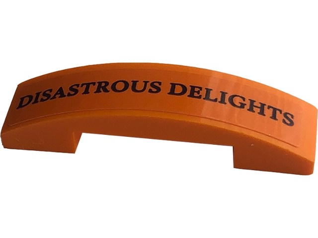 Slope, Curved 4 x 1 x 2/3 Double with Black 'DISASTROUS DELIGHTS' Pattern (Sticker) - Set 76422