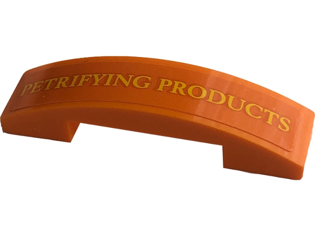 Slope, Curved 4 x 1 x 2/3 Double with Yellow 'PETRIFYING PRODUCTS' Pattern (Sticker) - Set 76422