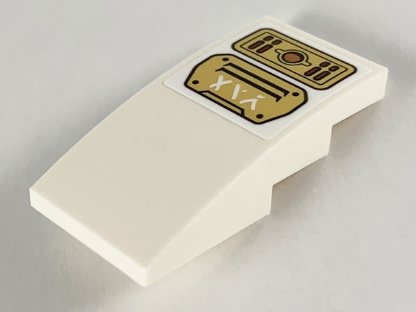 Slope, Curved 4 x 2 with Gold Armor Plates, Machinery, Vents, White Ninjago Logogram 'AIR' Pattern (Sticker) - Set 71702