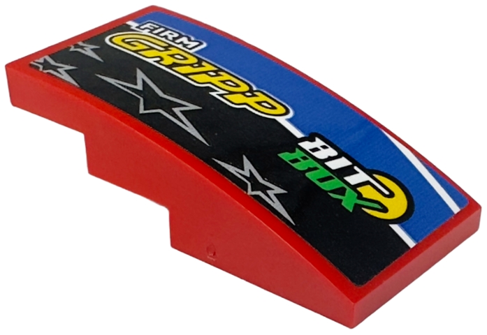 Slope, Curved 4 x 2 with 'BIT BOX', 'FIRM GRIPP' and 4 Stars on Black, Blue and White Stripes Pattern Model Right Side (Sticker) - Set 42153