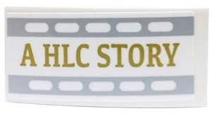 Slope, Curved 4 x 2 with Gold 'A HLC STORY' with Light Bluish Gray Filmstrip Edges Pattern Model Left Side (Sticker) - Set 41448