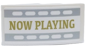 Slope, Curved 4 x 2 with Gold 'NOW PLAYING' with Light Bluish Gray Filmstrip Edges Pattern Model Left Side (Sticker) - Set 41448