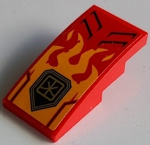 Slope, Curved 4 x 2 with Bright Light Orange Flames, Vents and Gold Ninjago Logogram Letter K Pattern (Sticker) - Set 71780